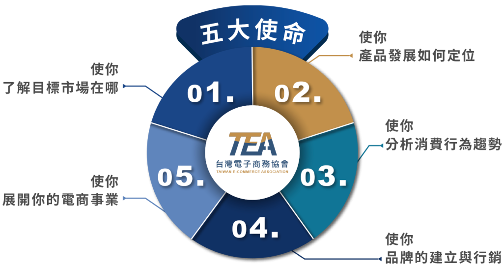 協會介紹 五大使命 組織架構圖 理監事名單 About Us 關於我們 台灣為科技之島,電子商務展現出台灣的重要地位,傳統的零售透由數位媒體網路進行產品銷售,並結合了物流、金流、資訊流,涵蓋食衣住行育樂所有活動,結合了大數據分析、金融支付、廣告服務、資訊分享等等。 從傳統電商到跨境商務,說明電子商務於這年代的重要性及蓬勃發展。 第一屆理監事名單